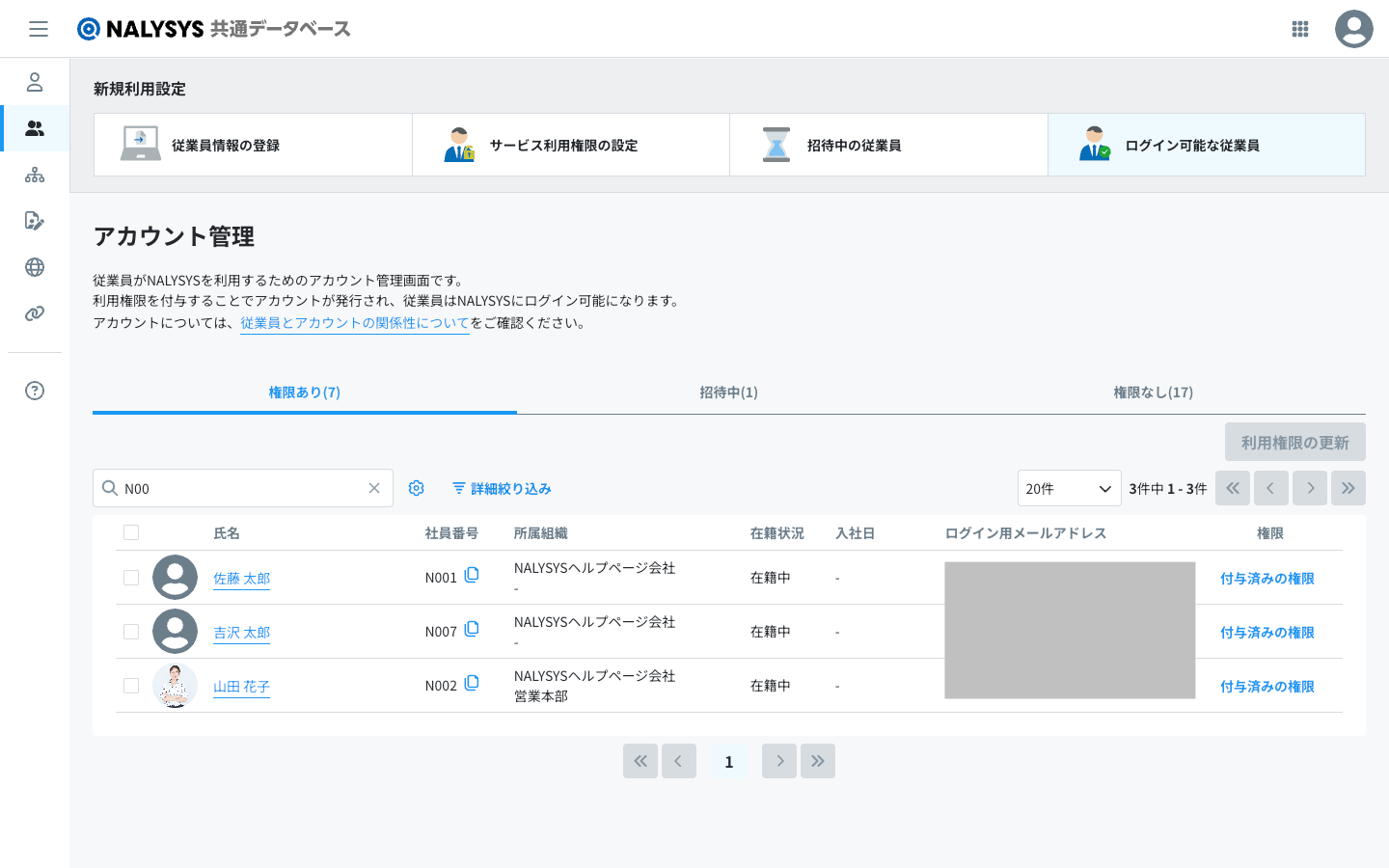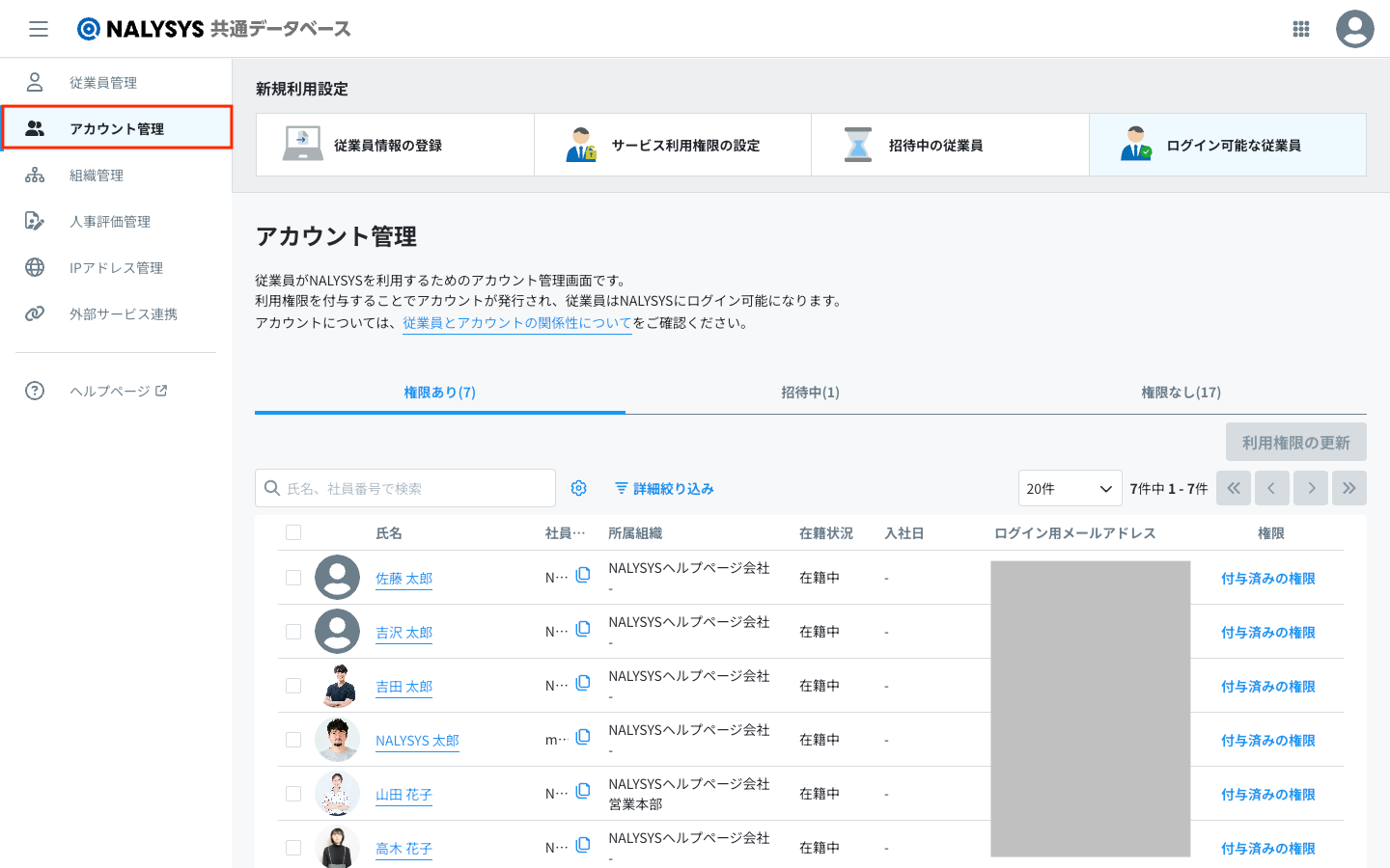 - アカウント情報に紐づく従業員情報は削除されません。