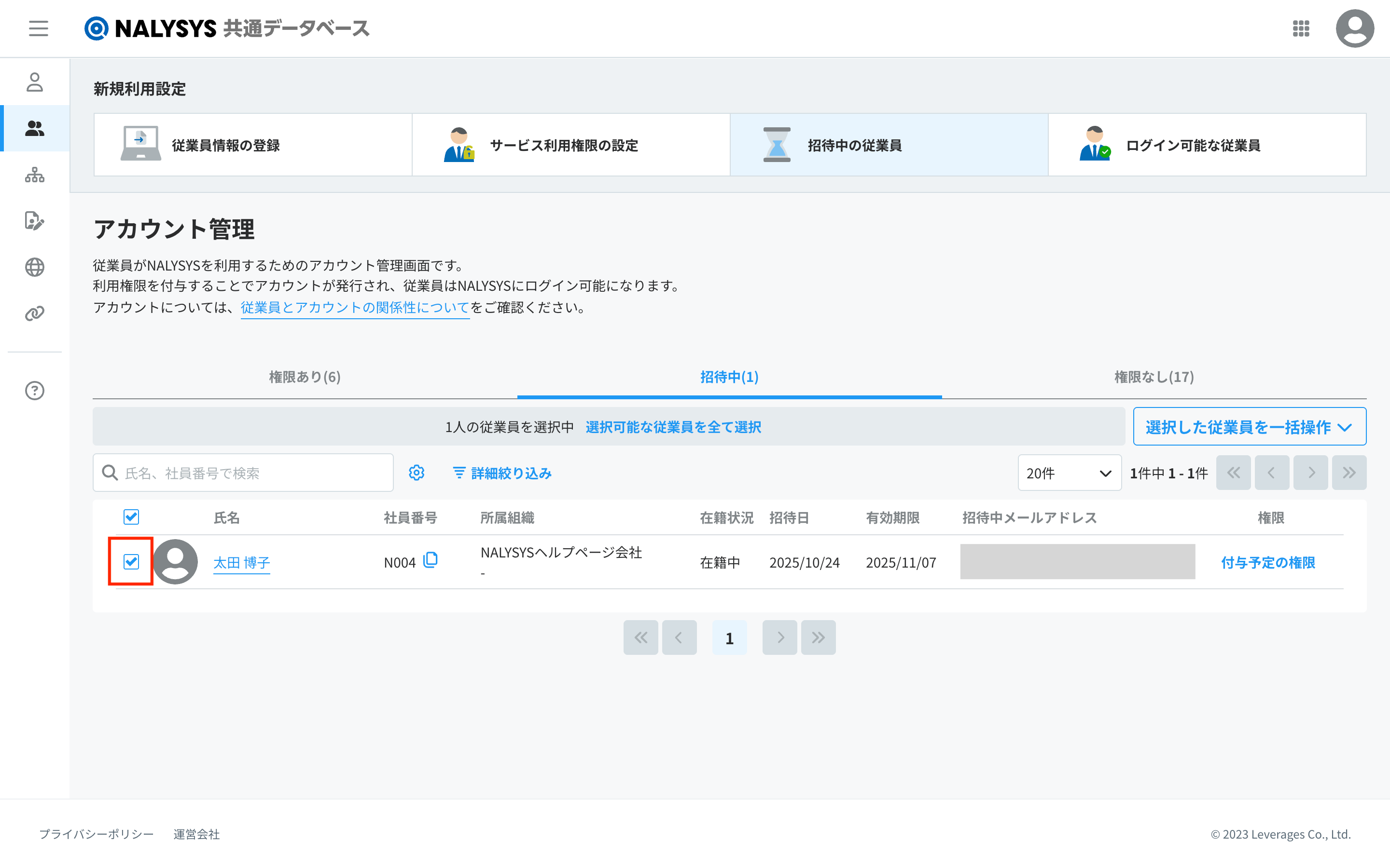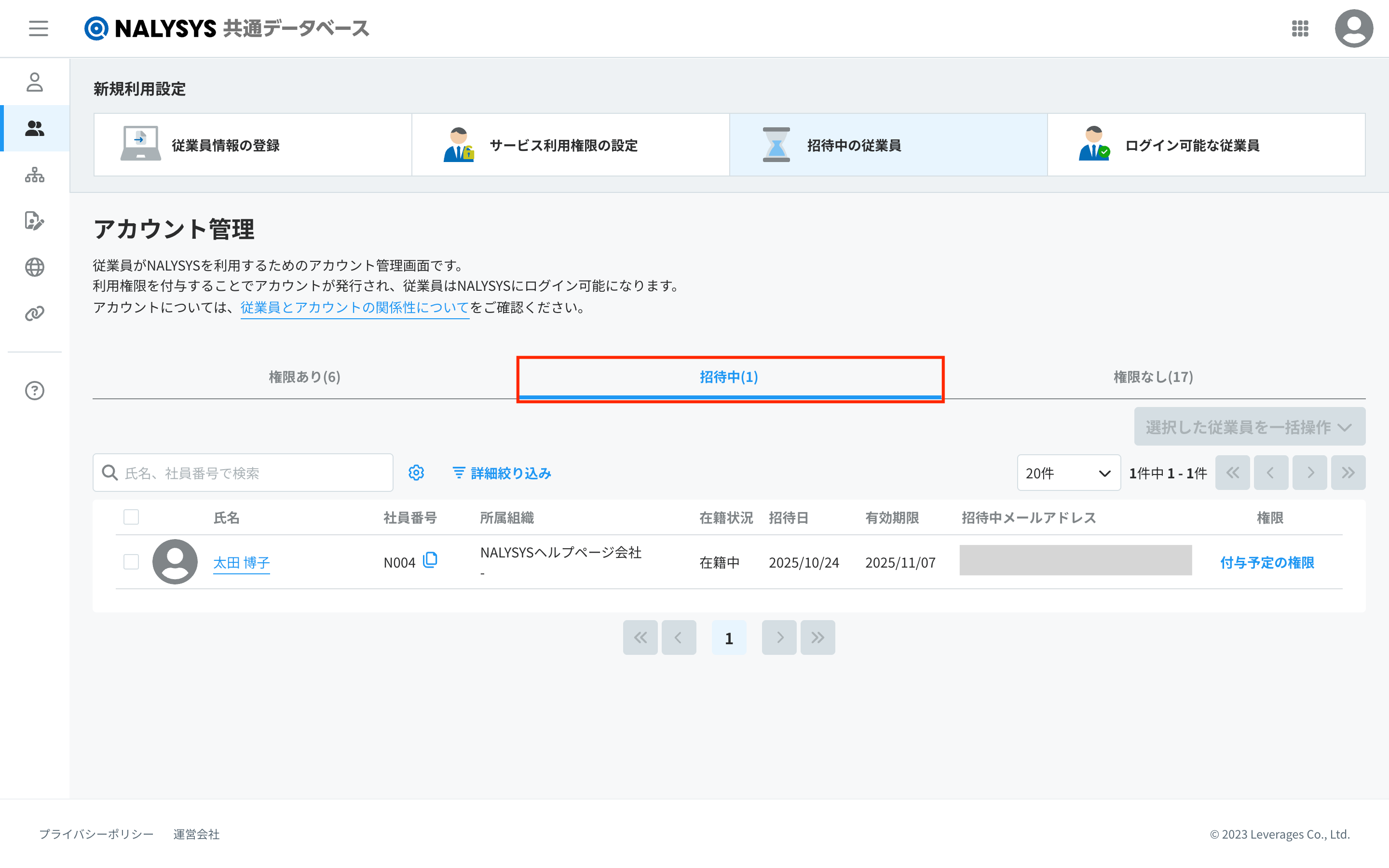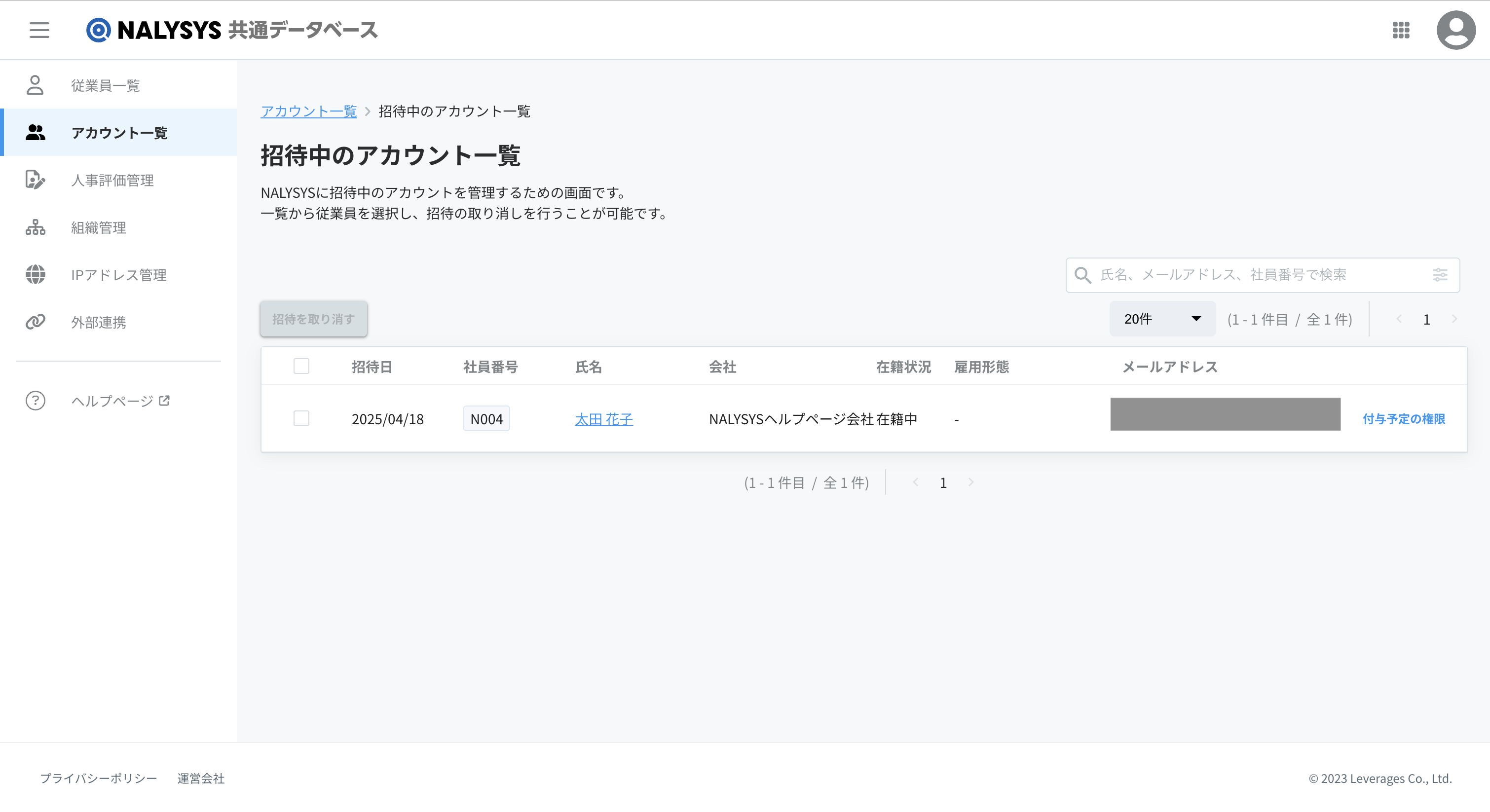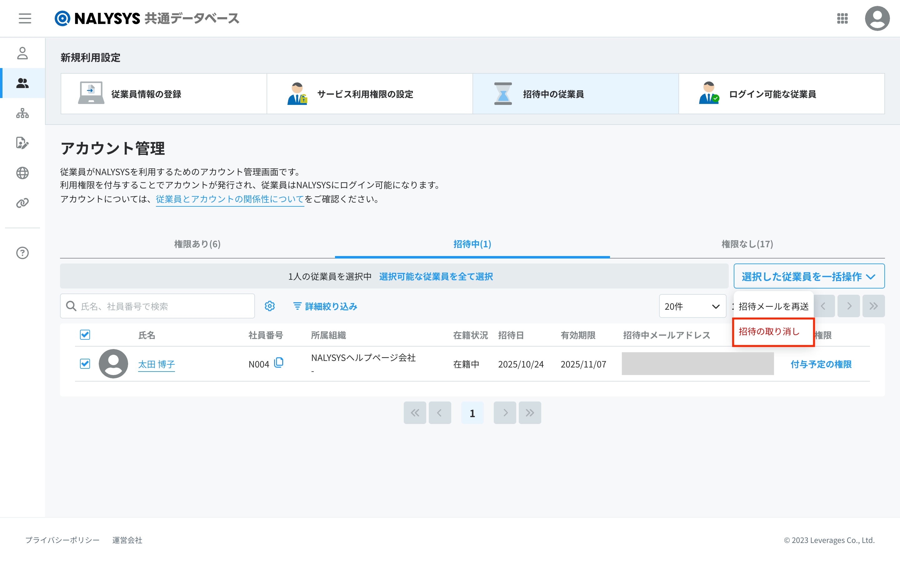 本ページでは、NALYSYSへの招待の取り消しを行う手順をご説明します。