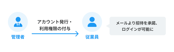 従業員がNALYSYSにログインし、サービスを利用するためには別途「アカウント」を発行する必要があります。