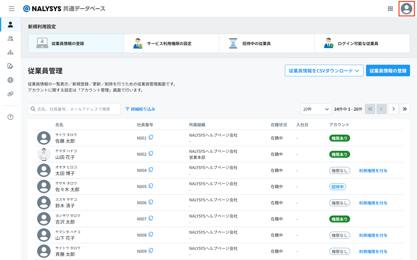 1. NALYSYSのヘッダーのアカウントアイコンを押す