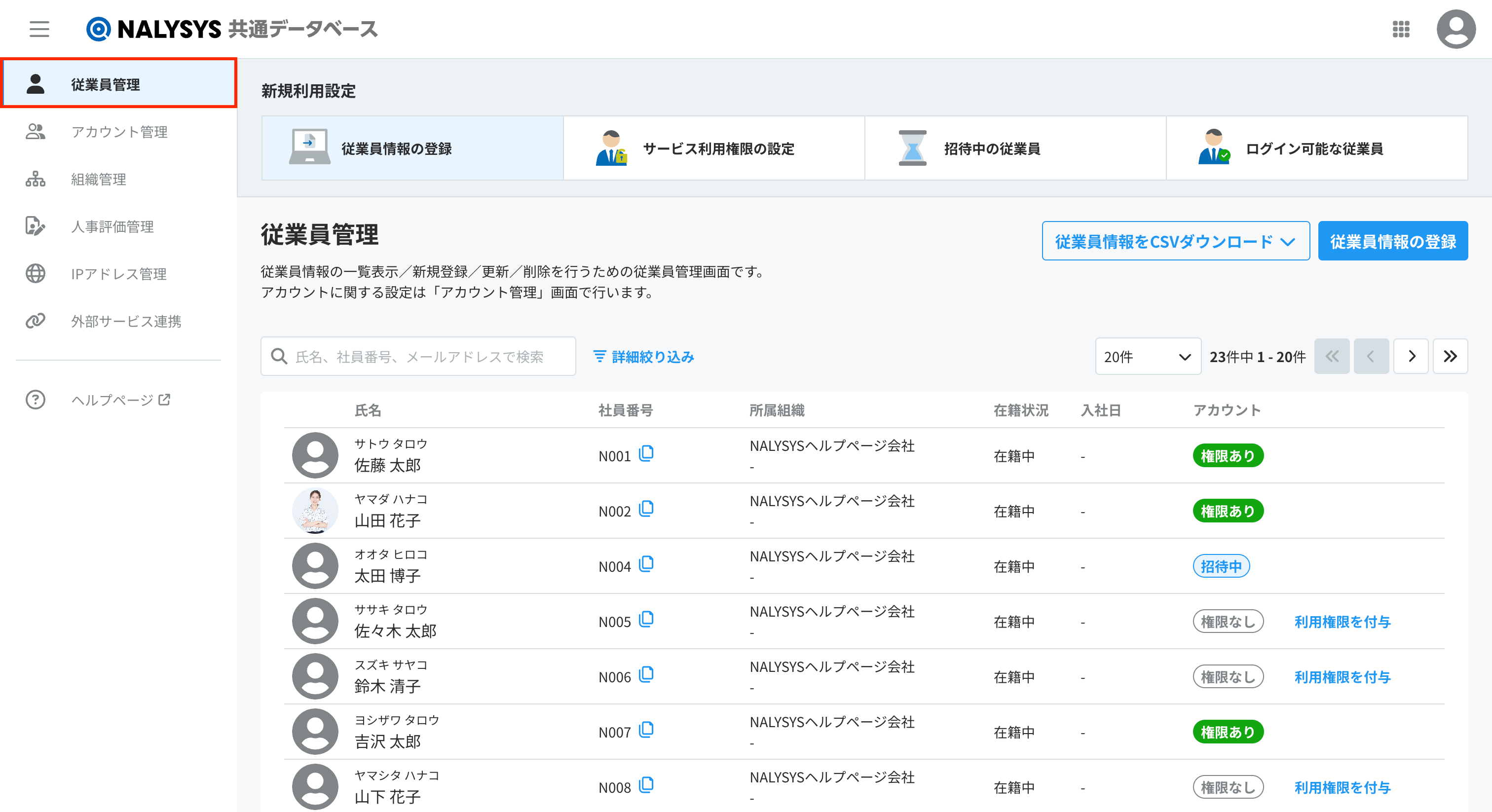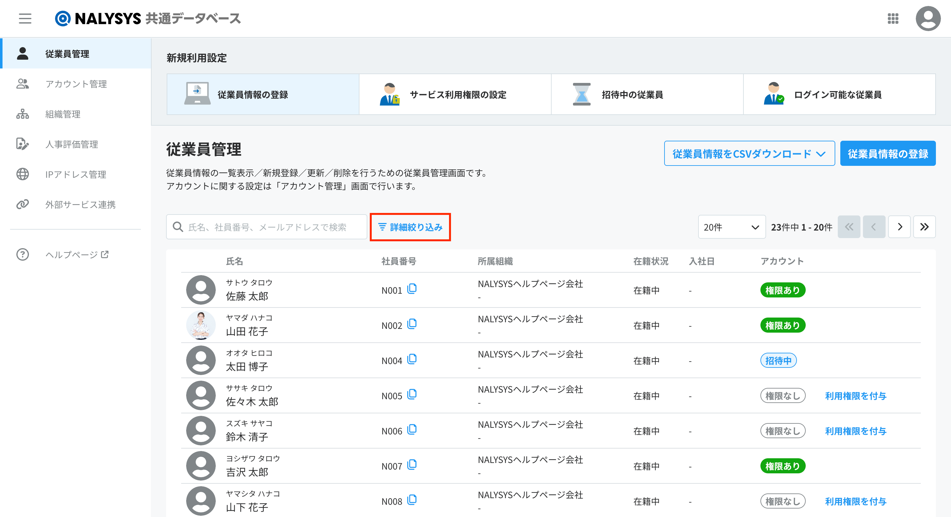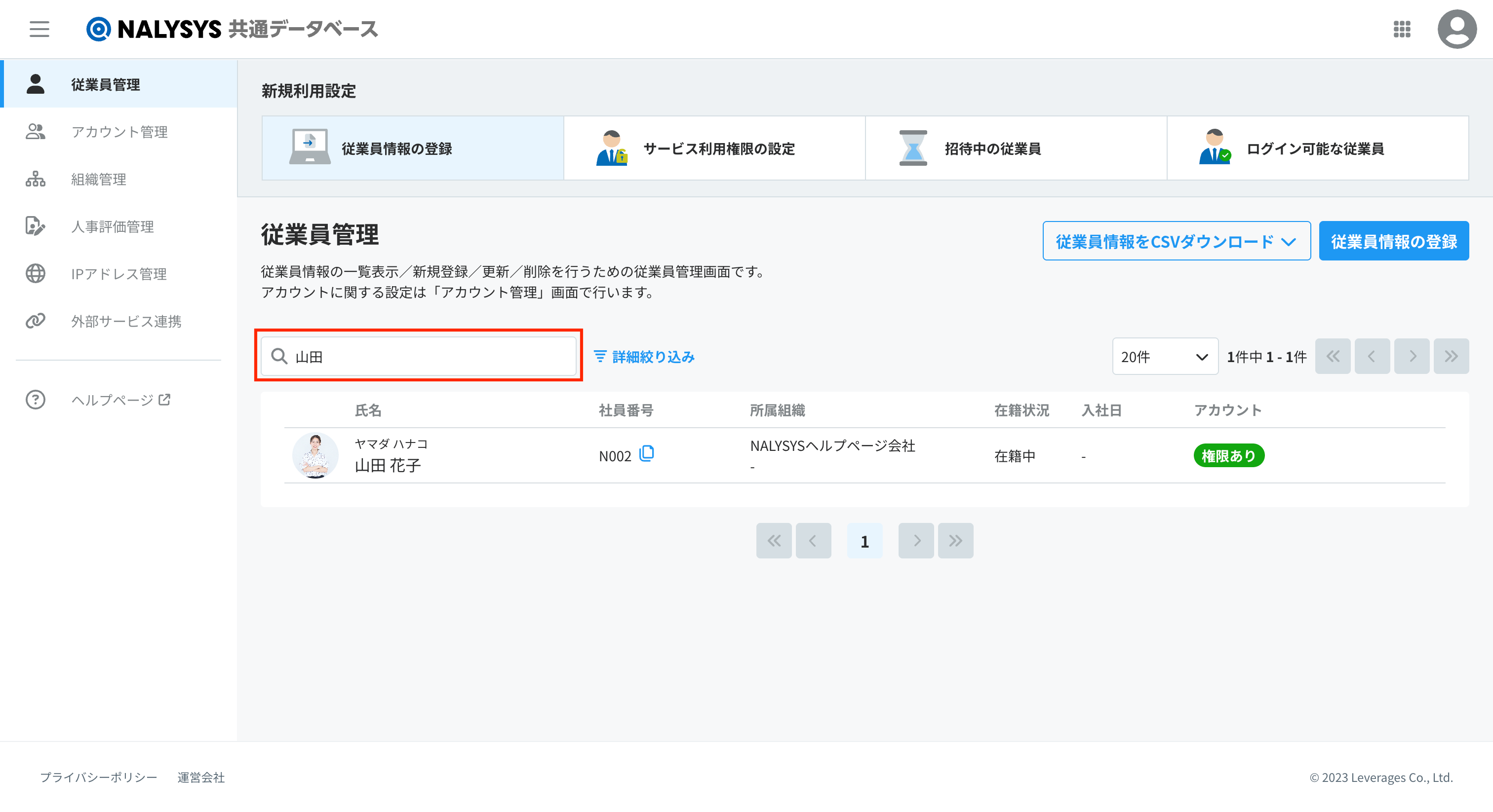 本ページでは、従業員情報の一覧を表示し、検索を行う手順をご説明します。