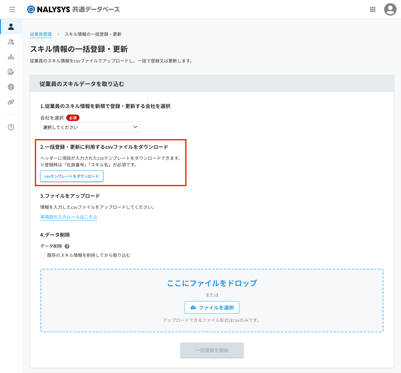 本ページでは、従業員情報のスキル情報を一括登録・一括更新する手順をご説明します。