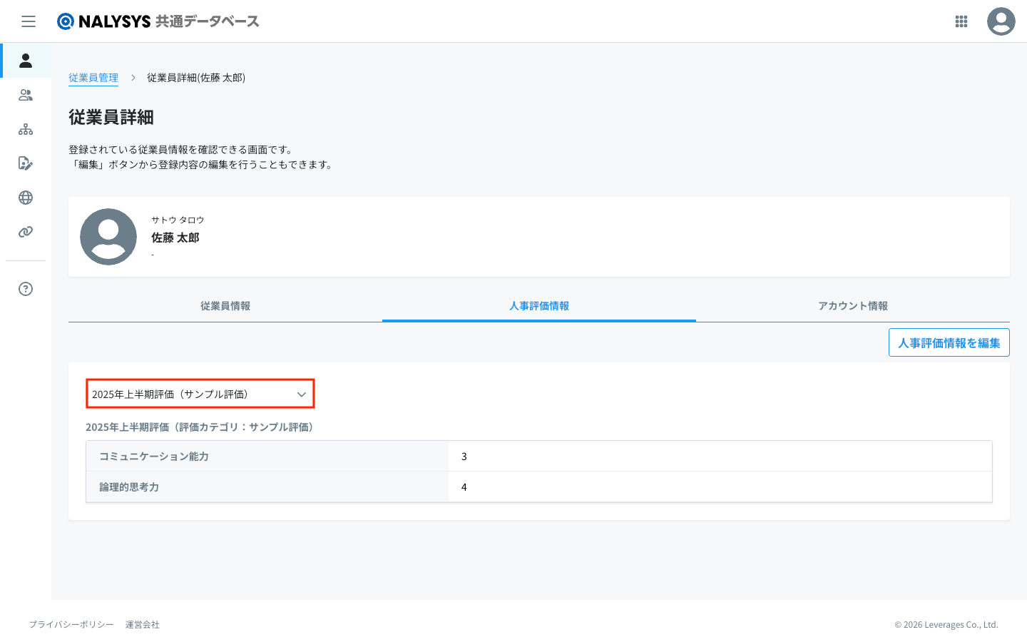 従業員の人事評価情報表示画面への遷移方法は「従業員の人事評価情報を表示する」を参考にしてください。