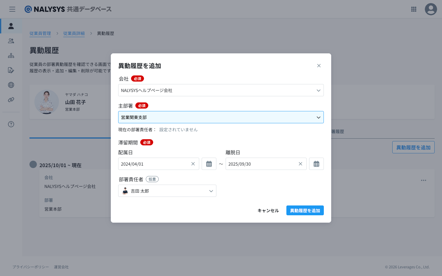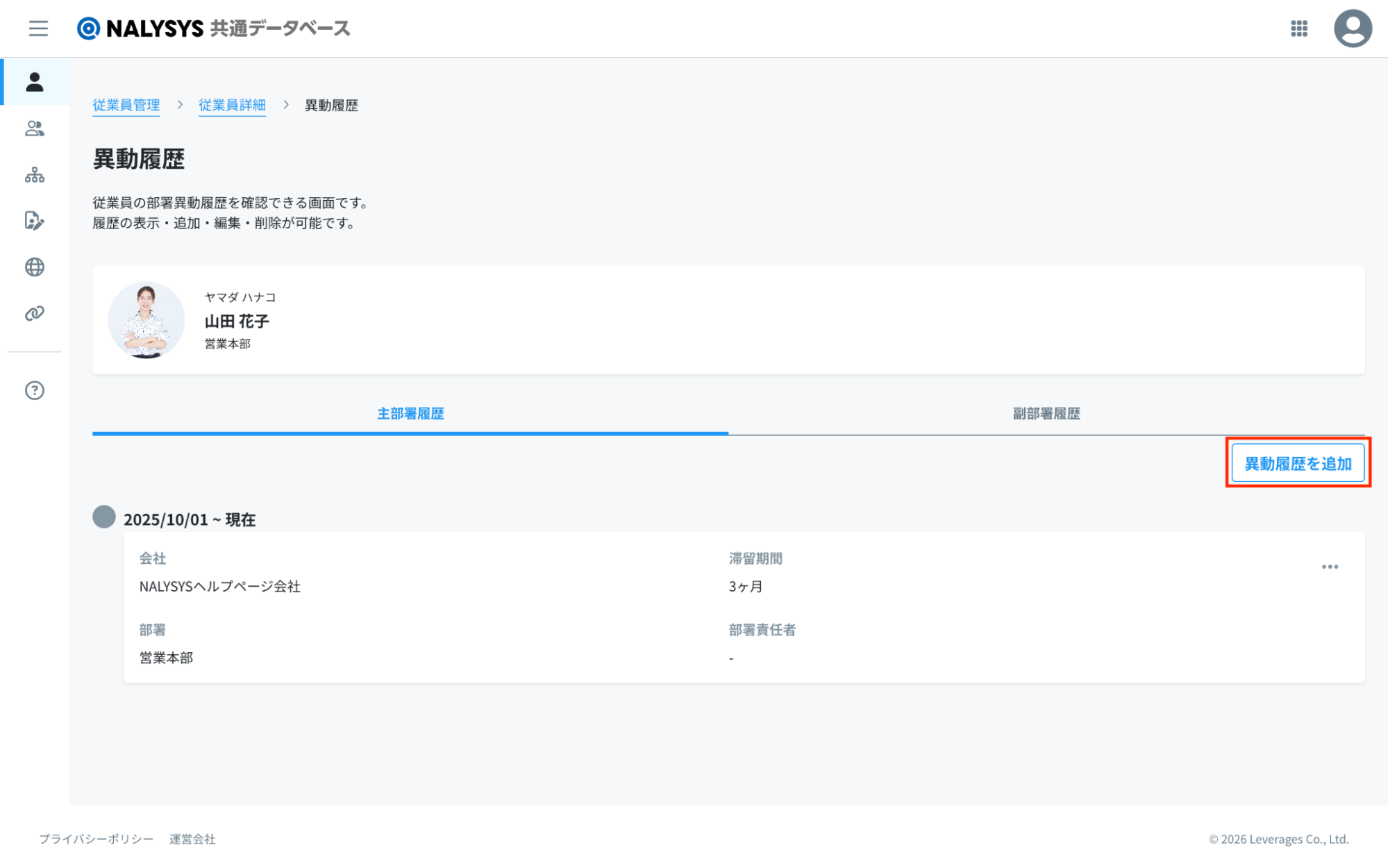 主部署か副部署かに関わらず、同様の操作で異動履歴を登録できます。