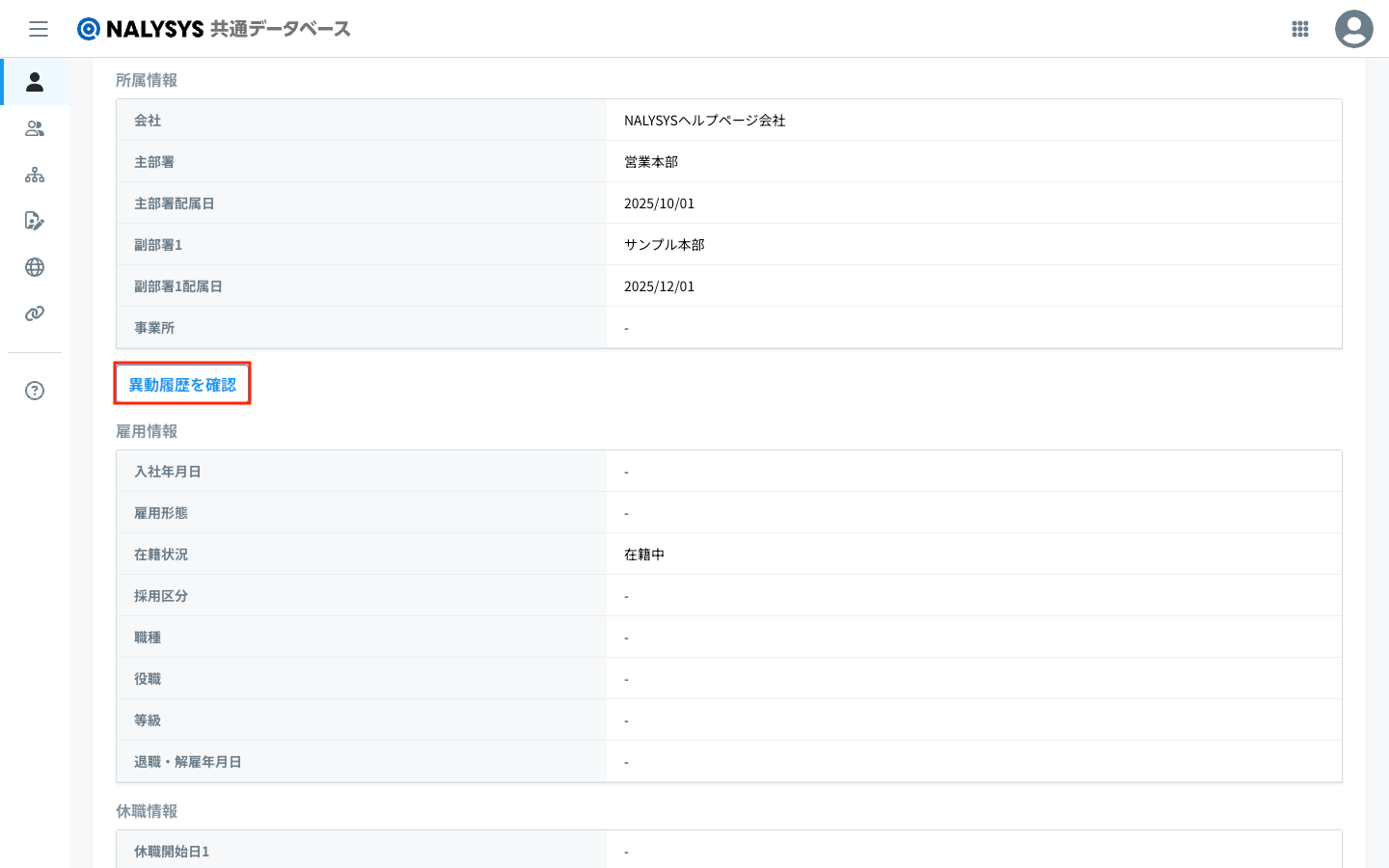本ページでは、従業員の異動履歴を表示する手順を説明します。