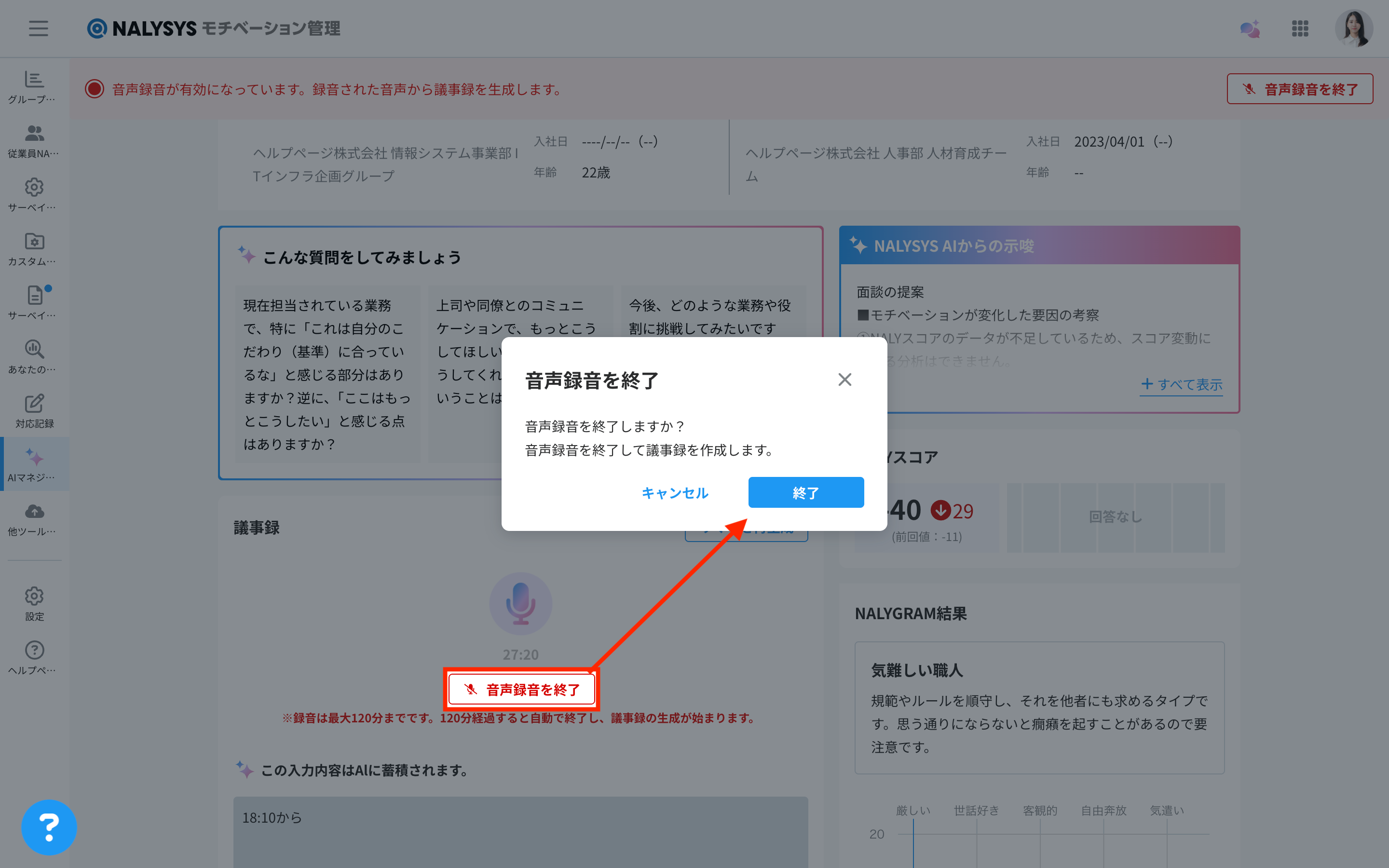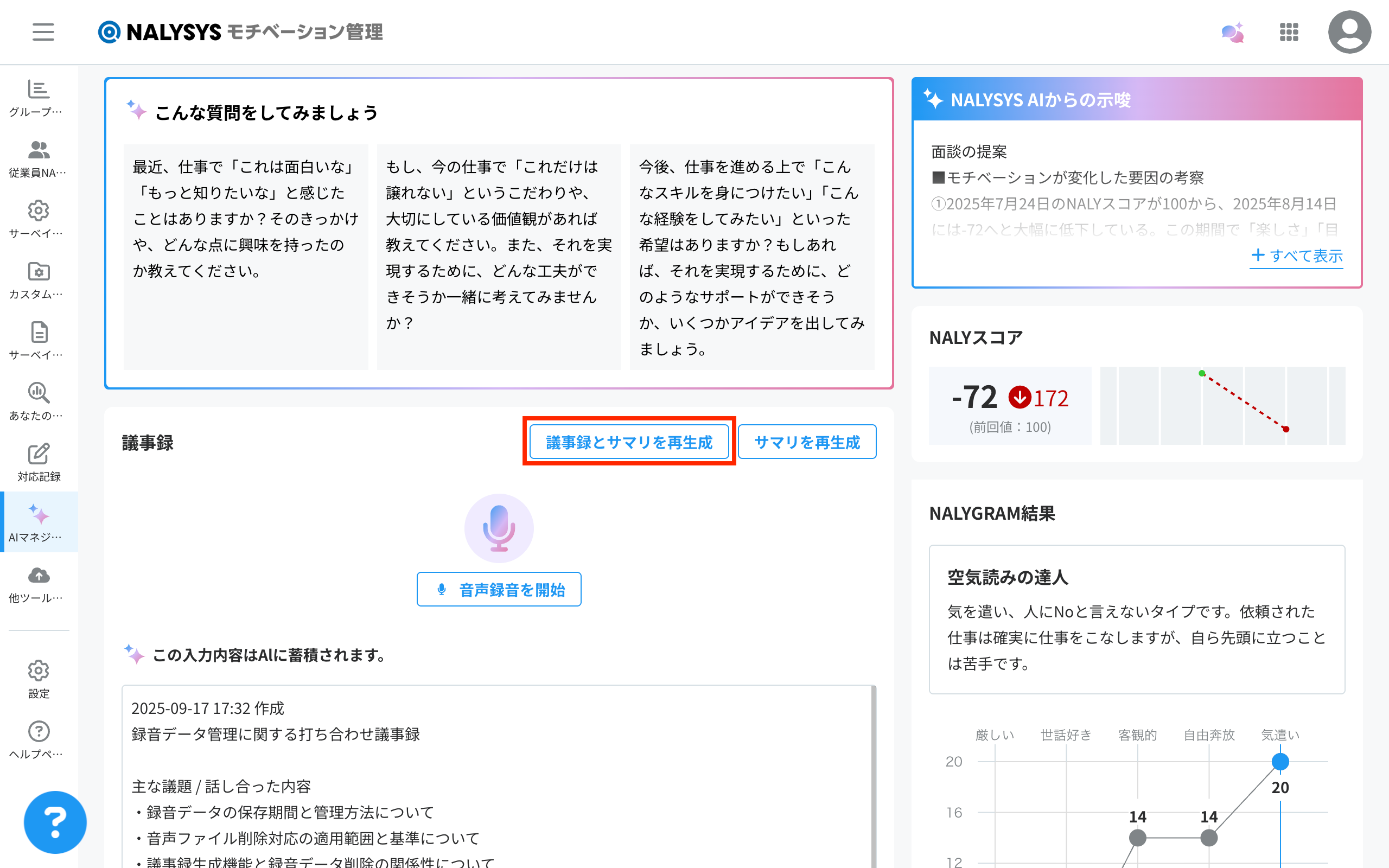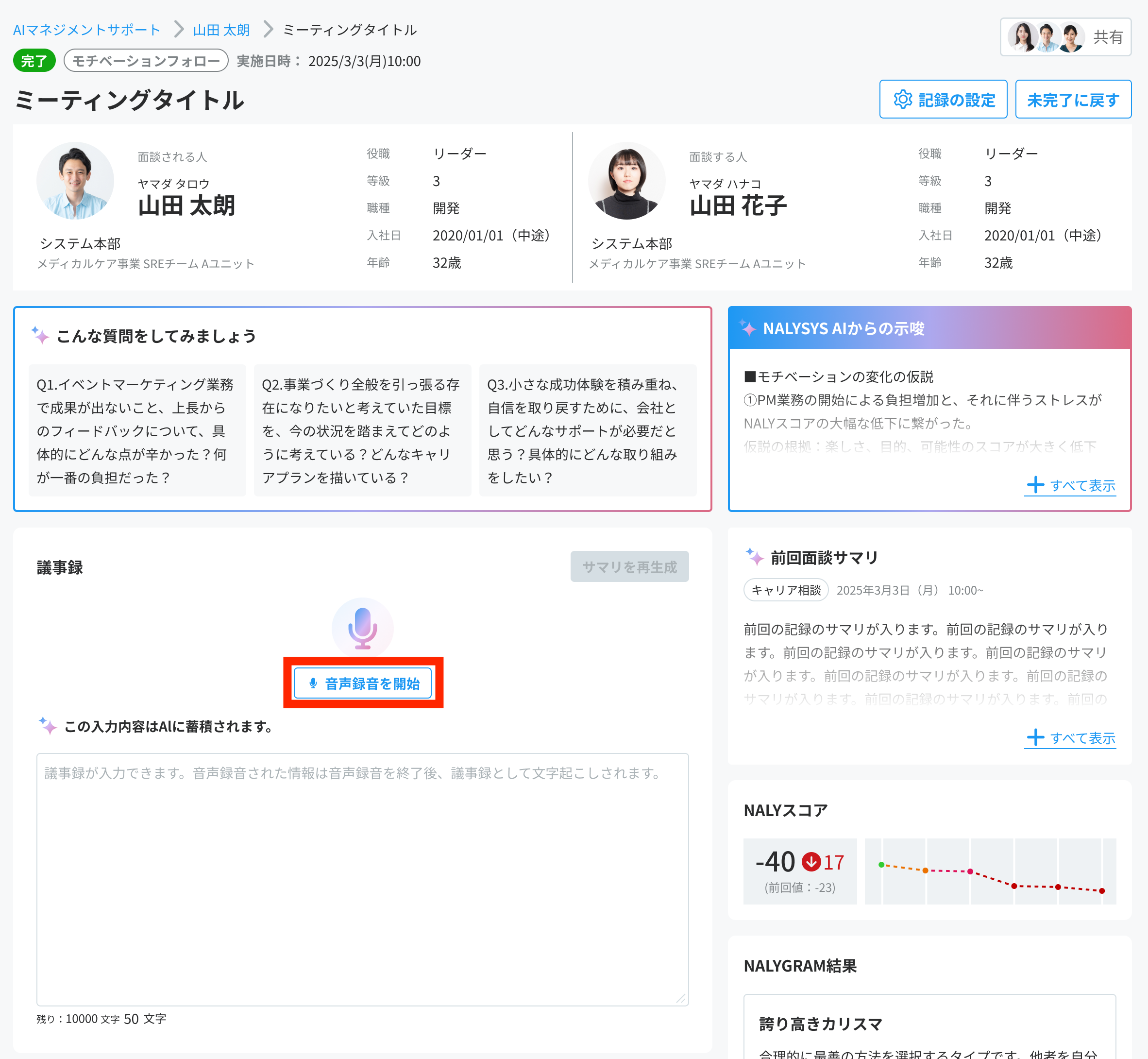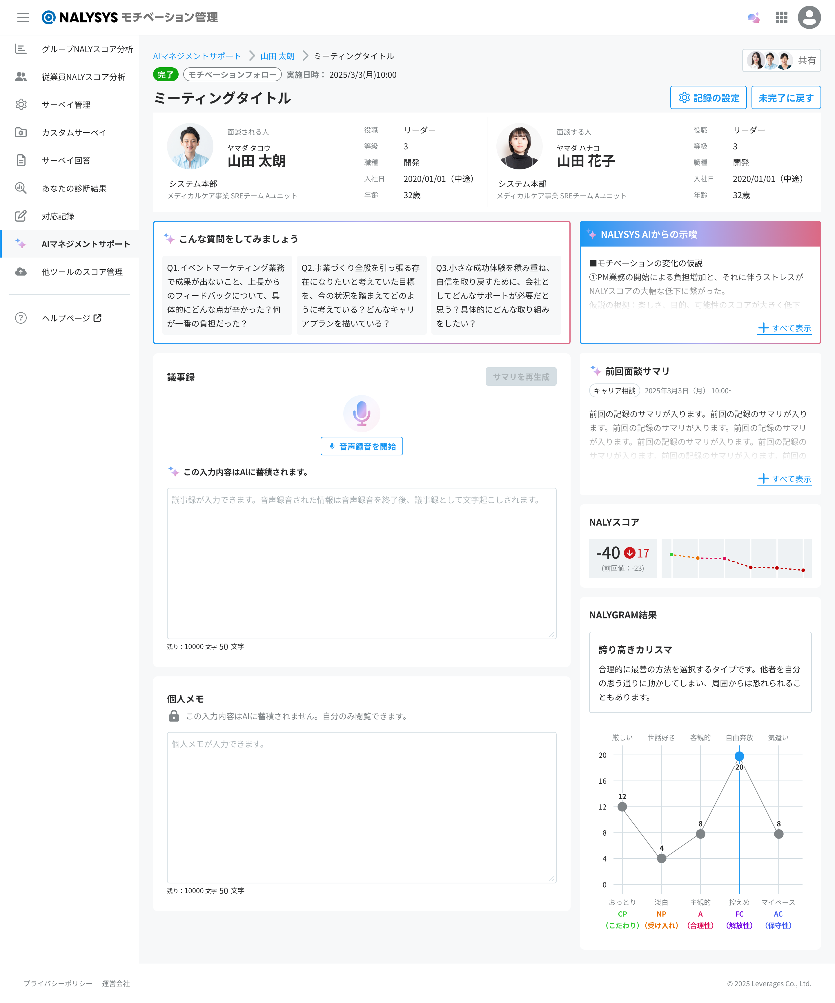 本ページではAIマネジメントサポートを使った面談の手順を説明します。