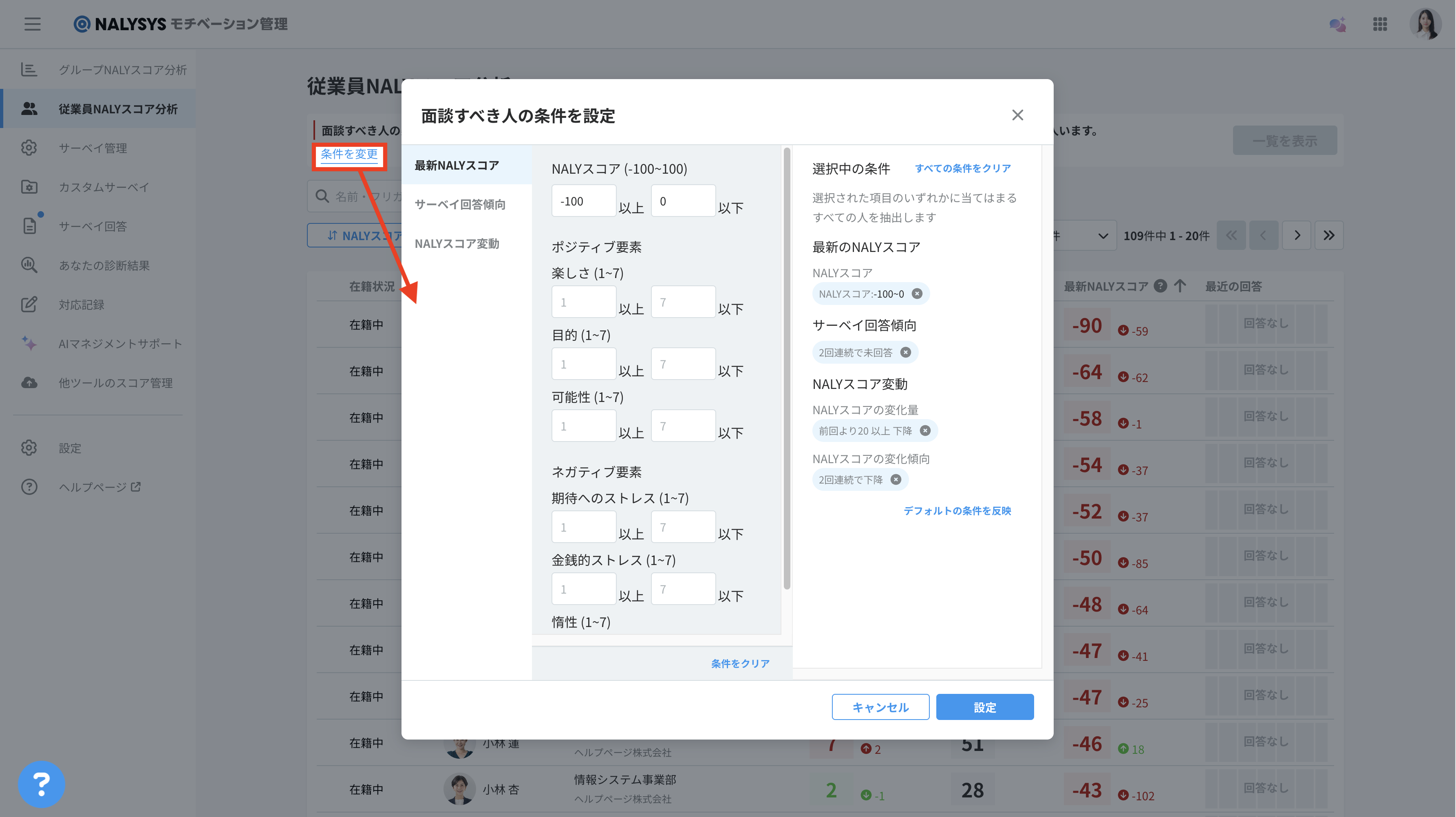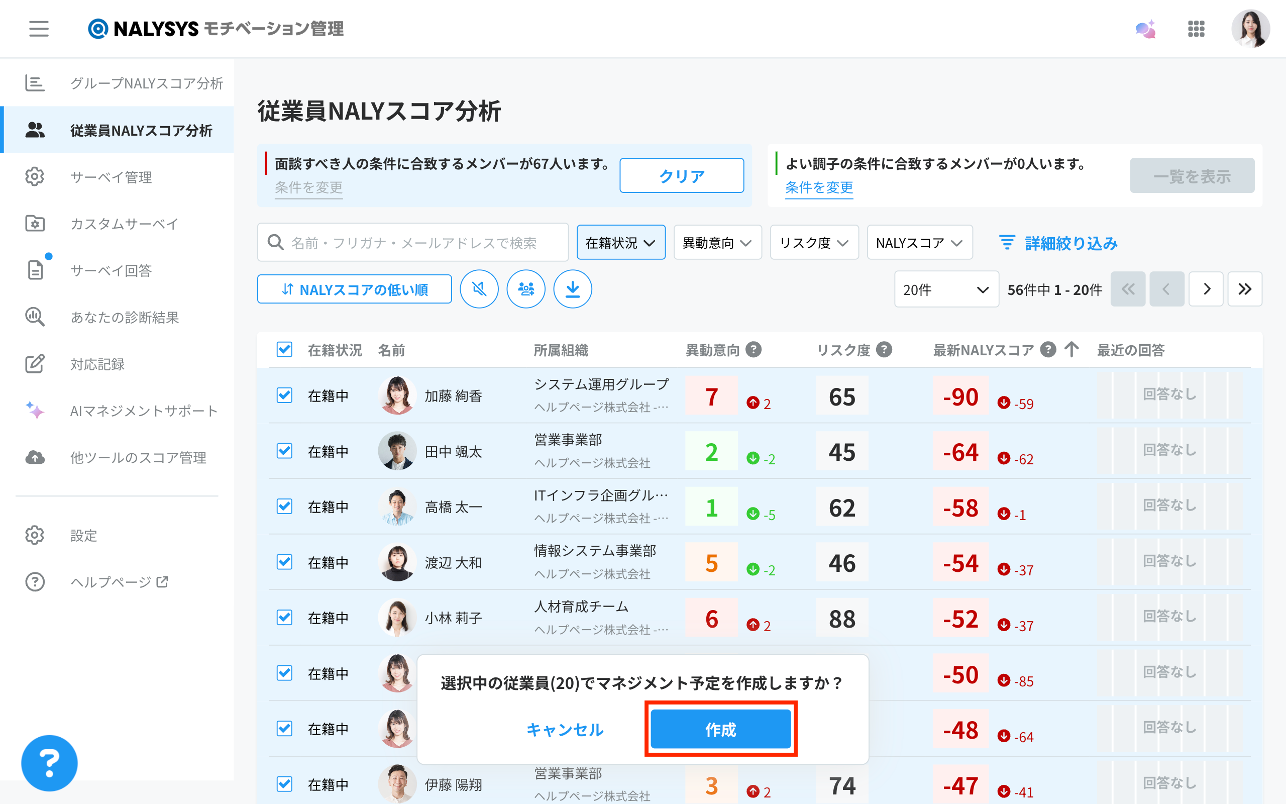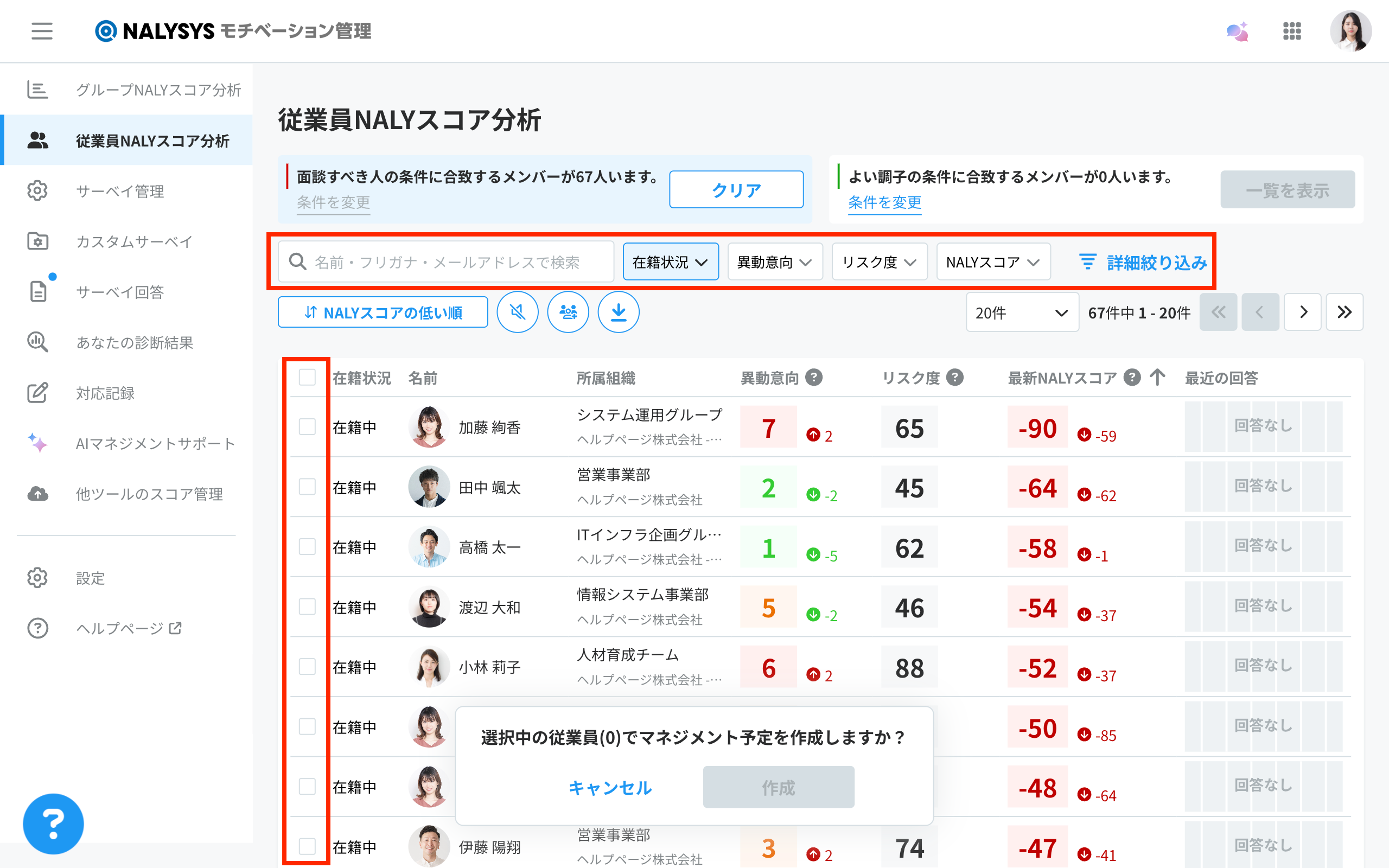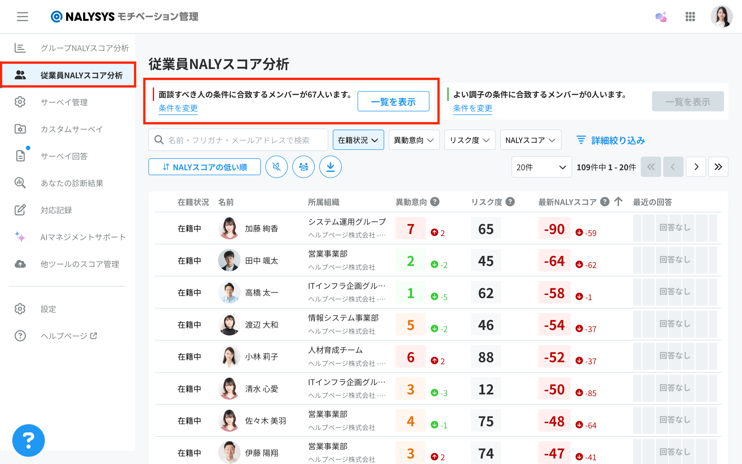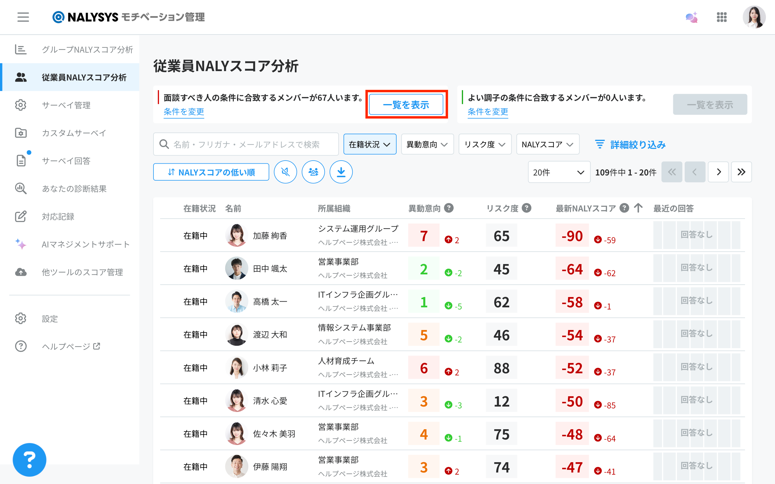 サイドメニューの従業員NALYスコア分析からはじめます。
