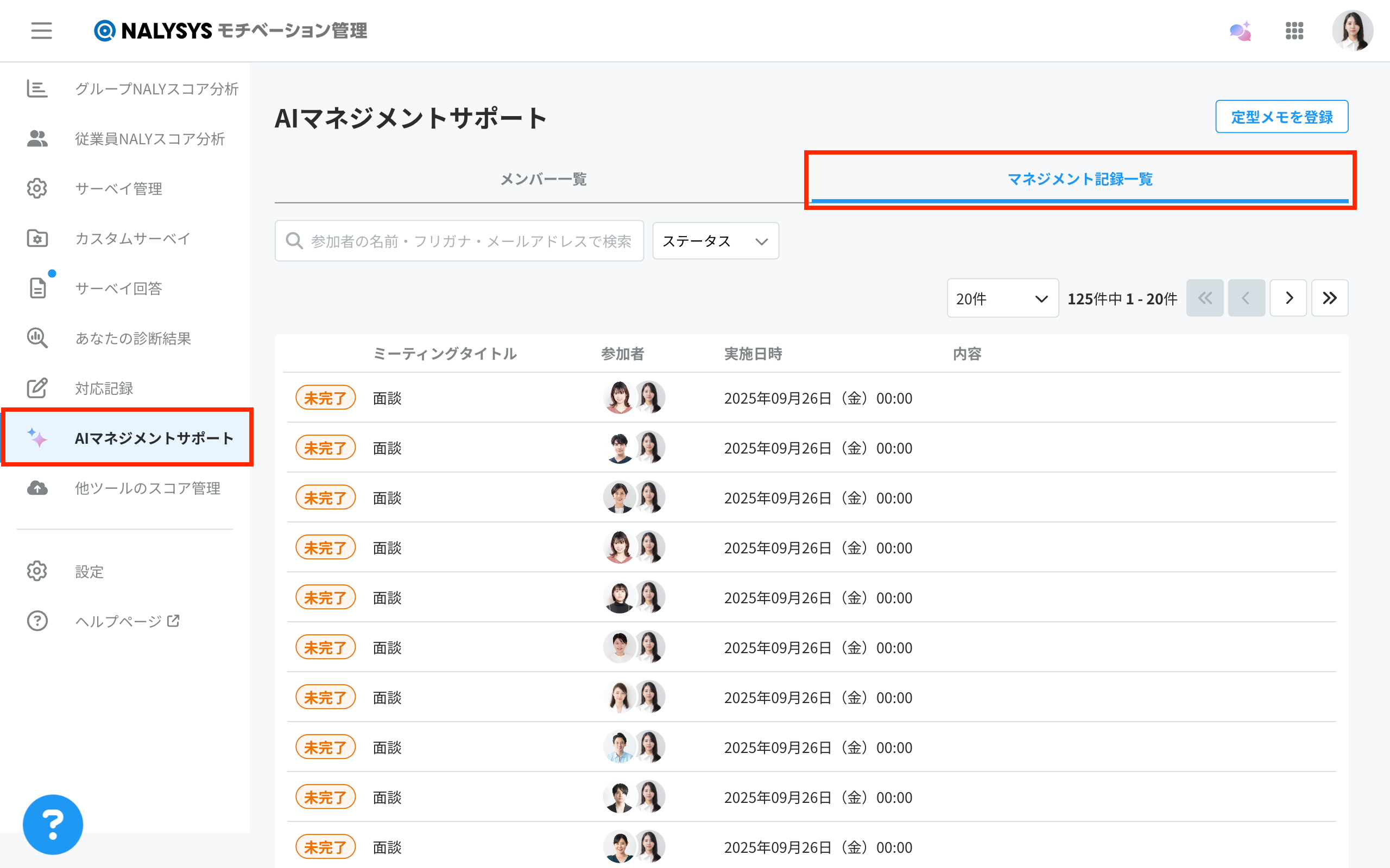 作成された予定は、「AIマネジメントサポート」画面上で確認できます。