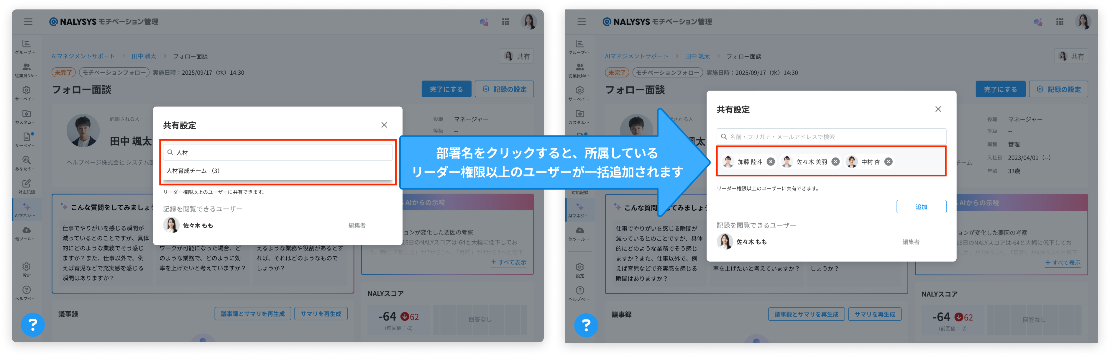 本ページではAIマネジメントサポートを使った面談の記録を、他のユーザーに共有する手順を説明します。